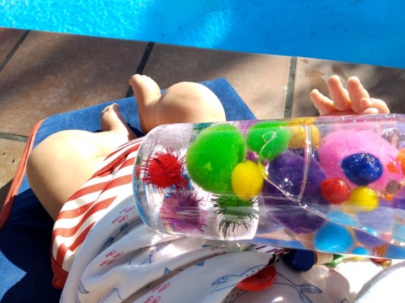 Com podeu veure, es requereix de materials molt econòmics, i que, segurament, alguns d’ells ja teniu a casa. Podeu fer una varietat infinita de combinacions. Nosaltres hem utilitzat elements amb colors molt cridaners i també de contrastos, però, més endavant, o si teniu nens més grans, podeu crear ampolles temàtiques per treballar de forma sensorial continguts que es treballin a a l’escola, per exemple: el mar, el desert, l’espai, la platja, l’hivern, l’estiu, la tardor, etc. Més endavant posarem en pràctica aquesta experiència!