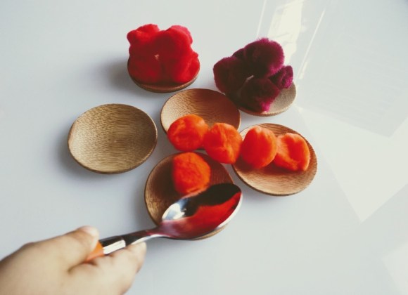 Les hores de tardor a casa es comencen a fer llargues… així que amb l’Arcadi busquem ratets d’entreteniment! Aquests dies he anat recopilant materials diversos per realitzar exercicis de psicomotricitat final. Avui hem fet transvasaments de boletes amb tons de colors tardor, petits platets de fusta i una cullereta. Aquesta activitat permet estimular la coordinació muscular, fet que també ens és útil a l’hora de menjar.