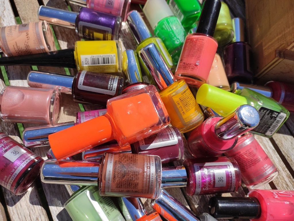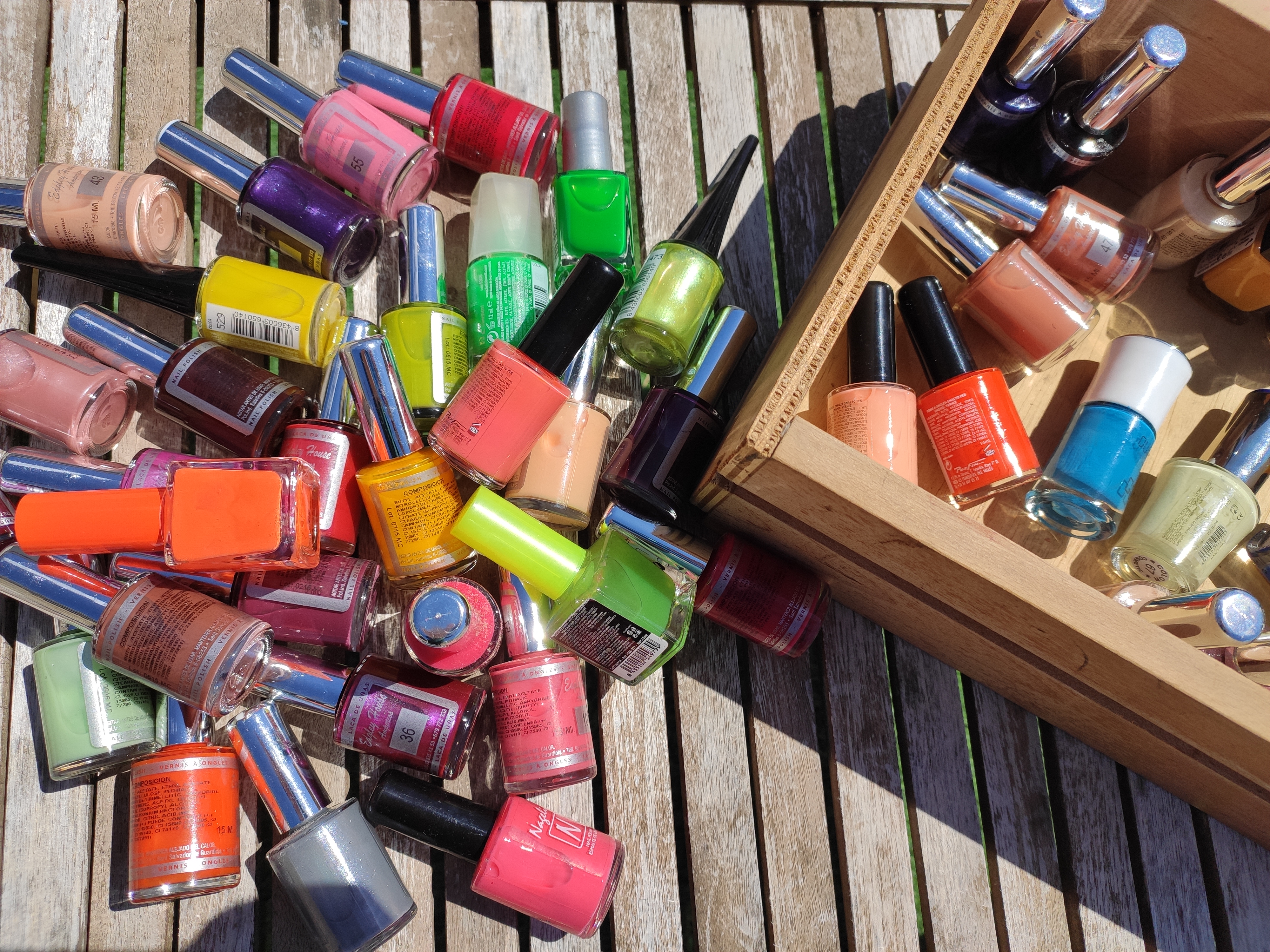 Un dels millors regals que ens podeu fer a casa són materials per crear tot tipus de manualitats o jocs! Avui els tiets ens han deixat un regal magnífic! A la nostra entrada de casa hem trobat una caixeta farcida de pintaungles de colors fantàstics. No és que ens pintem gaire les ungles, però quan els hem vist, immediatament m’ha vingut al cap una activitat que fa dies que vaig veure a Pinterest i que volia provar. Es tracta de pintar una superfície, com pot ser paper, fusta, vidre, etc. amb pintaungles. Així doncs, avui hem tingut una oportunitat ideal! A més, a casa hem trobat unes rajoletes blanques plenes de pols i les hem rescatat per fer l’experiment.