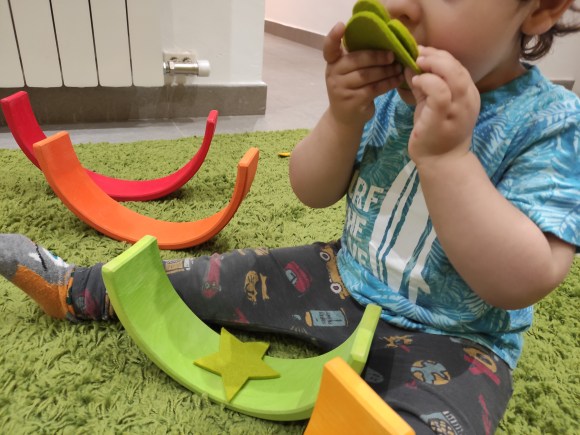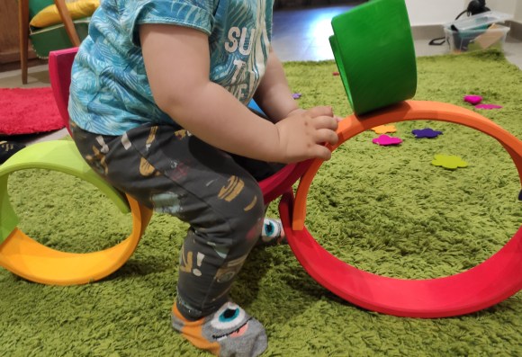 Així doncs, aquest ha sigut l’espai que he preparat per l’Arcadi. Òbviament, sempre és molt més enriquidor poder compartir aquest joc amb altres infants, però tot i així, la interacció amb els materials permeten desenvolupar igualment representacions mentals inconscients a través del moviment i també conscients a través del joc simbòlic.
