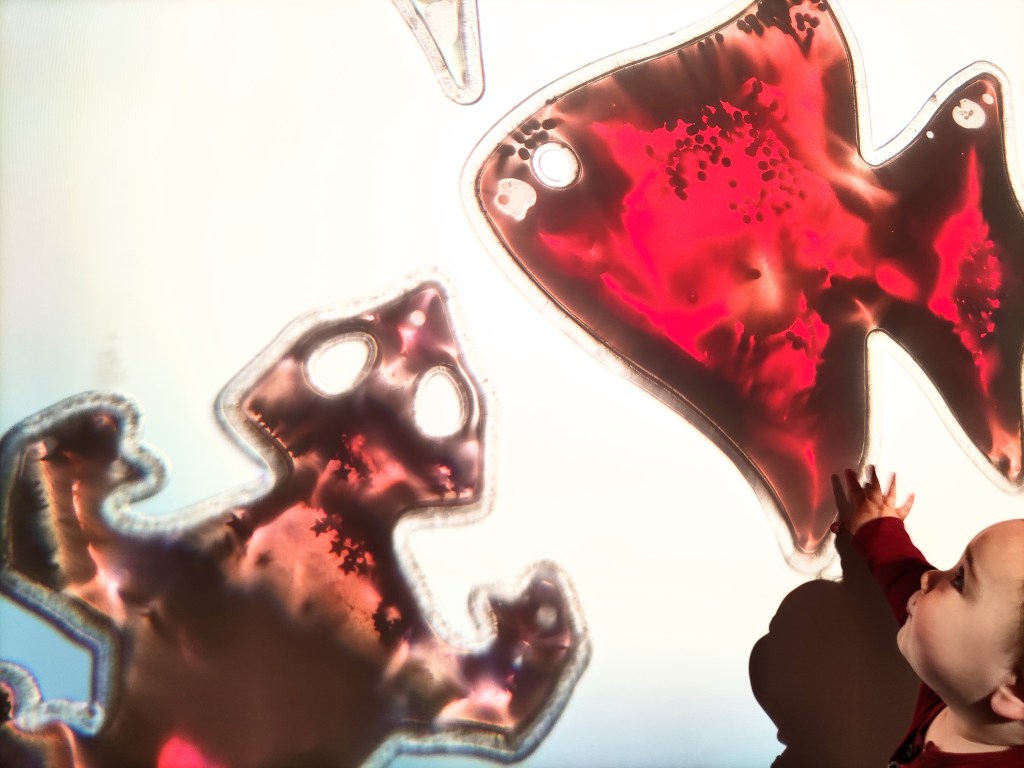 Avui hem tret tots els materials de la taula de llum, però ja us ho ensenyarem a poc a poc! Hem comprovat que hi ha miiiil possibilitats d’experimentació i d’aprenentatges…