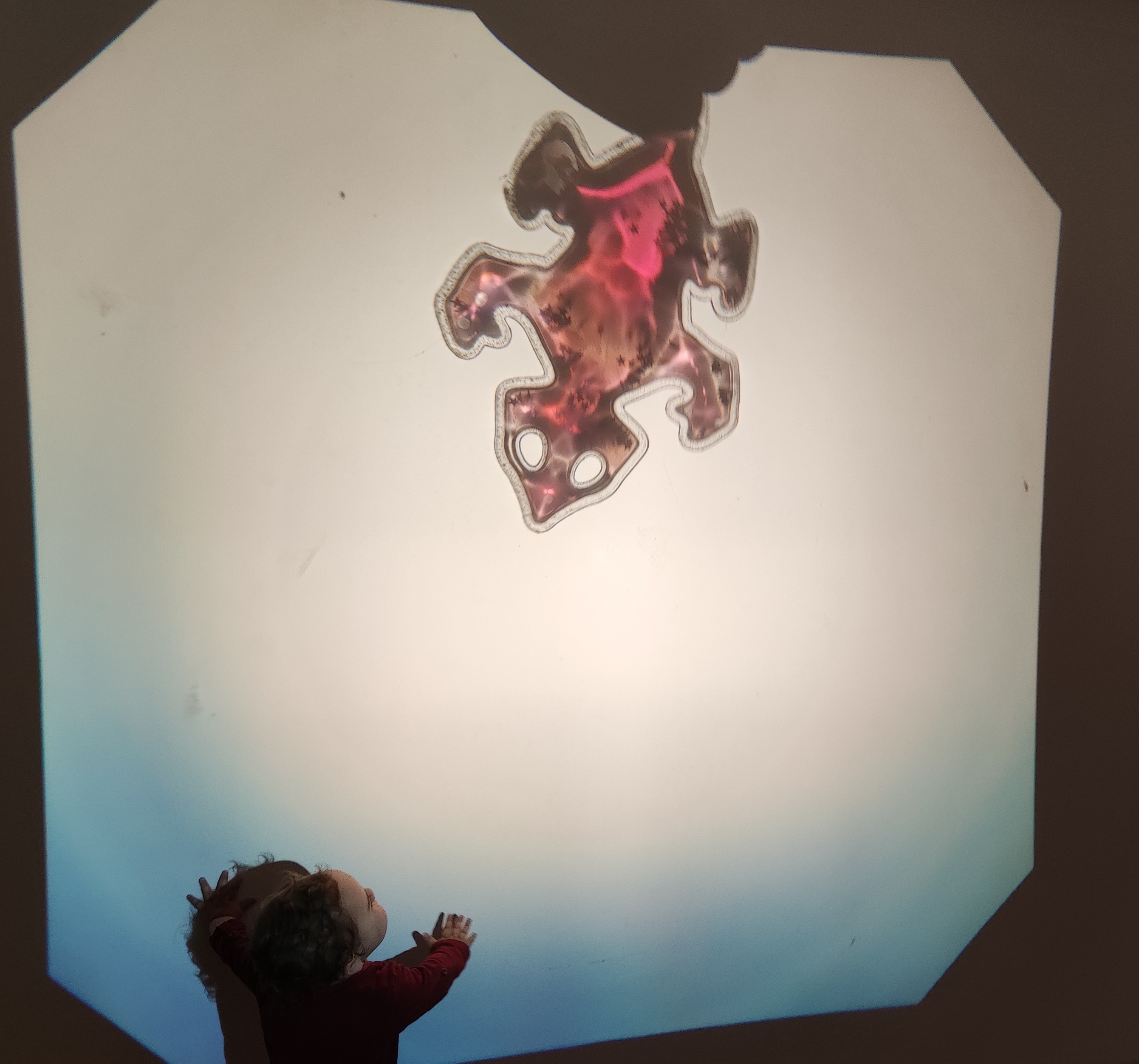 Sembla que les pedagogies actuals l’han fet reviscolar! Realment fa certa funció de taula de llum, però al mateix temps permet unes projeccions a la paret espectaculars!