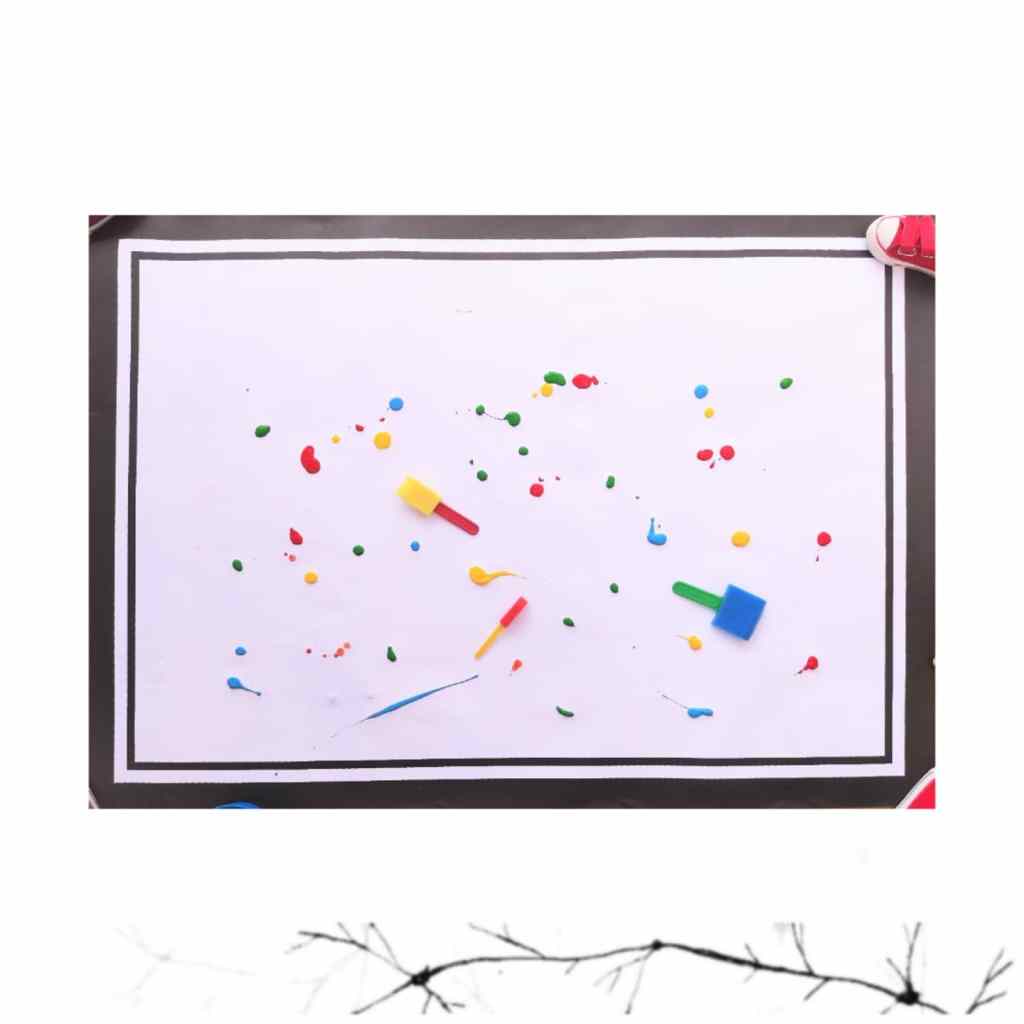 Vam començar amb algunes gotes tirades sobre l’enorme làmina, i, a mesura que les anàvem escampant amb pinzells de gruixos diferents, el papa ens n’anava tirant més des de la seva gran altura. Com si una dutxa de pintura de colors es tractés.